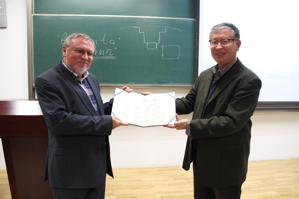 2016年10月14日下午,内蒙古大学在南校区举行聘任仪式,聘请尼古拉.尼古拉维奇.卡拉丁(NikolayNikolaevichKradin)教授为内蒙古大学客座教授,必赢bwin线路检测中心院长那顺巴依尔教授为尼古拉.尼古拉维奇.卡拉丁(NikolayNikolaevichKradin)教授颁发了证书。