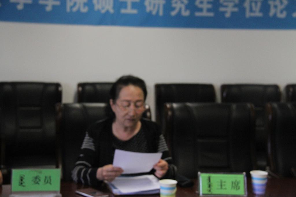 本次必赢bwin线路检测中心13级硕士研究生学位论文答辩的答辩小组由四名答辩委员和一名主席组成,答辩小组的成员来自于内蒙古大学、内蒙古师范大学、内蒙古农业大学、内蒙古社会科学院。每场答辩设有一名答辩秘书,负责答辩的相关事项。