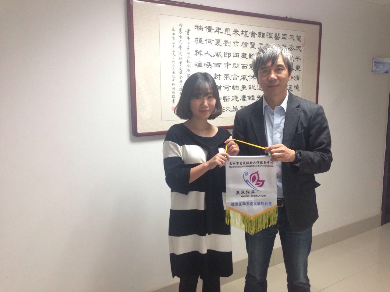 实习生与哈斯额尔敦副教授在惠州市惠民社工服务中心合影