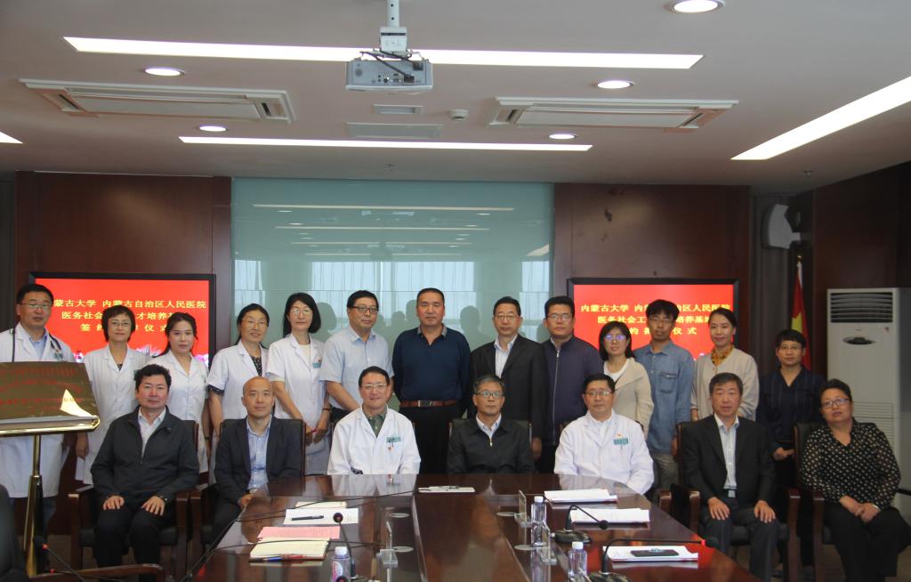2019年9月10日,内蒙古大学与内蒙古自治区人民医院在内蒙古自治区人民医院举行了“内蒙古大学 内蒙古自治区人民医院医务社会工作人才培养基地”的签约揭牌仪式。内蒙古大学副校长张吉维与内蒙古自治区人民医院党委书记、院长孙德俊共同签署合作协议书,并为基地共同揭牌。