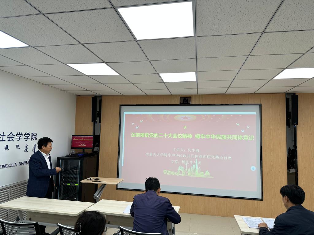 此后,何生海教授作了题为“深刻领悟党的二十大会议精神 铸牢中华民族共同体意识”的专题讲座。