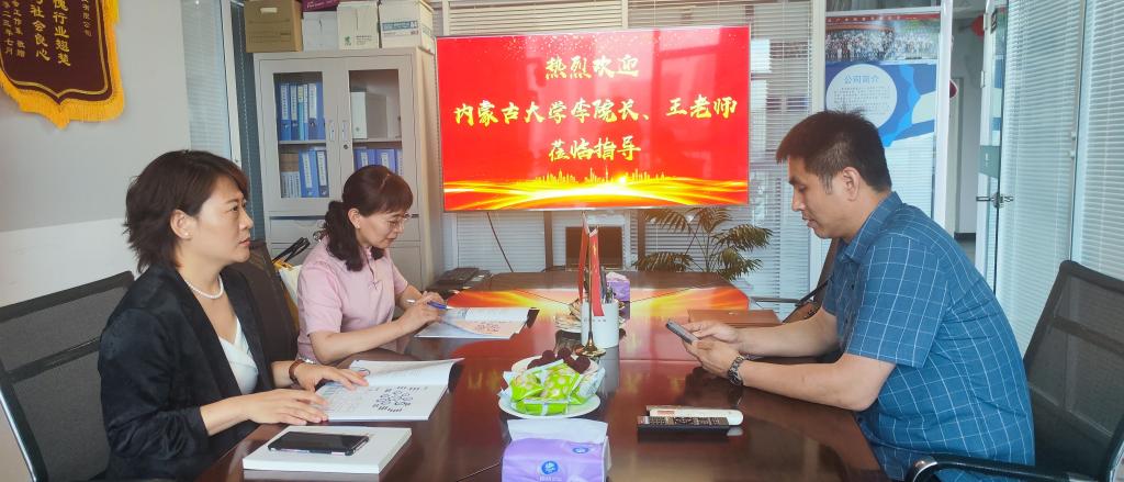 在美亚总经理姜标的带领下,李娟副院长和王娜老师参观了企业,了解了企业的文化与工作理念,以及目前的运行机制、未来愿景,尤其是哪些岗位有适合内蒙古大学学生就业,并对相关的要求即薪资待遇进行探讨。