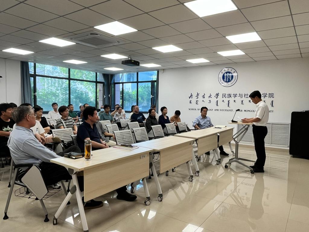 学院院长、研究中心常务副主任阿拉坦宝力格在总结学院和研究中心上半年工作的基础上布置了下半年工作,包括学科建设、人才工作、教学工作、科研工作及管理工作,希望全体教职工做好本职工作,以优异成绩和良好状态迎接本科教学审核评估,努力实现一流学科建设目标。