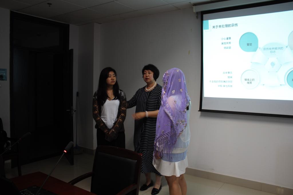 “要做自己感觉的主人”,吕霄红老师通过强调这句话展开本次萨提亚家庭治疗专题——哀伤与丧失的分享。吕霄红老师以热播剧《欢乐颂2》内的剧情为例,来说明哀伤是一种对重大事故的正常反应,并且哀伤的处理是否得当会影响到以后心理健康与否。吕霄红老师列举处理哀伤错误的做法来强调正确处理哀伤情绪的做法,强调应该正向积极地引导哀伤的人。吕霄红老师通过组织在座的学生来进行现场演示,以表现出掩盖悲伤的后果,还通过情景模拟的方式,说明如何正确解决哀伤丧失——把爱留在心底,从内心真正长大。