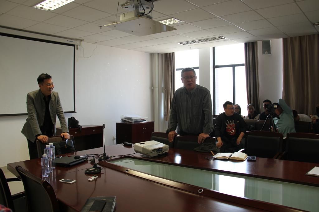 2017年4月27日下午2点半到4点半,在内蒙古大学南校区主楼1014教室,蒙古国国立大学人类学与考古学学院宝木奥其尔教授对自身的研究领域成果进行分享和学术交流,与会人员包括内蒙古电视台和内蒙古大学校内外师生近40人。
