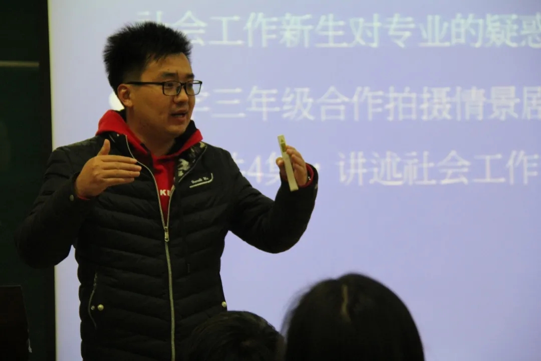 向羽老师从自己的学生生涯讲起,向在场的师生分享了自己的求学、从教和从业之路。讲座中,向羽老师用生动、平实而又真诚的语言,介绍了自己对社会工作认知的蜕变过程,讲述了自己从局外观察者到半参与者,从参与学习者到半实践者,再到继续探索者的自我探索、自我发现、践行主体性自我的过程。向羽老师“一直在路上”的拼搏进取精神感染了在场师生,赢得了阵阵掌声。