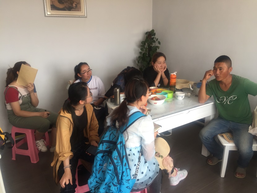 脑木更苏木位于四子王旗政府所在地正北170公里处,辖6个嘎查,面积4311平方公里,总人口2729人,地广人稀,属戈壁丘陵地带,以牧业为主。时值盛夏,师生们冒着摄氏40余度的高温,走访了多个嘎查,挨家挨户进行入户调查。调查人员争取到当地政府和牧民的支持,对四子王旗脱贫攻坚工作进行了全面细致的调查。