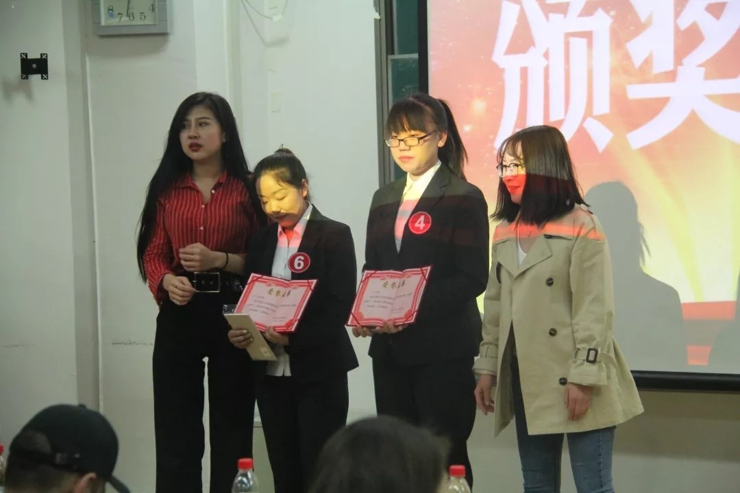 以及最终的颁奖环节。比赛中每一位选手都非常认真,她们身着正装,条理清晰的完成了自己的演讲,并得到了几位老师的点评。