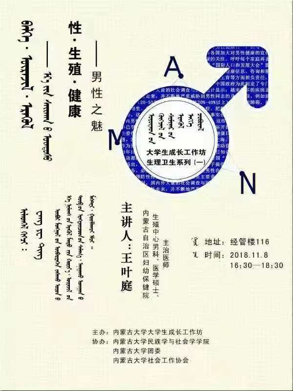 “性·生殖·讲课—男性之魅”讲座通知——大学生成长工作坊生理卫生系列活动(一)