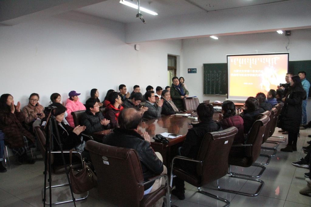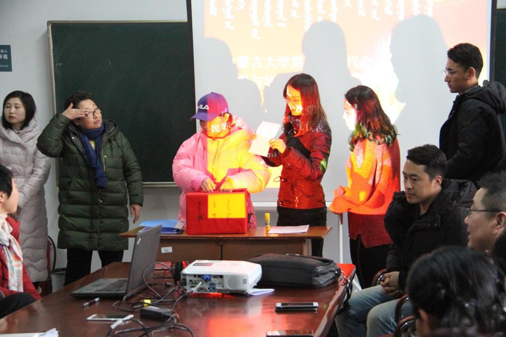 2018年12月13日下午4:30在学院会议室举行必赢bwin线路检测中心举行出席学校第十次党代会代表选举。本次会议由学院党总支书记王俊玲同志主持,教工党支部、蒙古学研究中心党支部、研究生党支部、本科生党支部52名正式党员参加本次选举。
