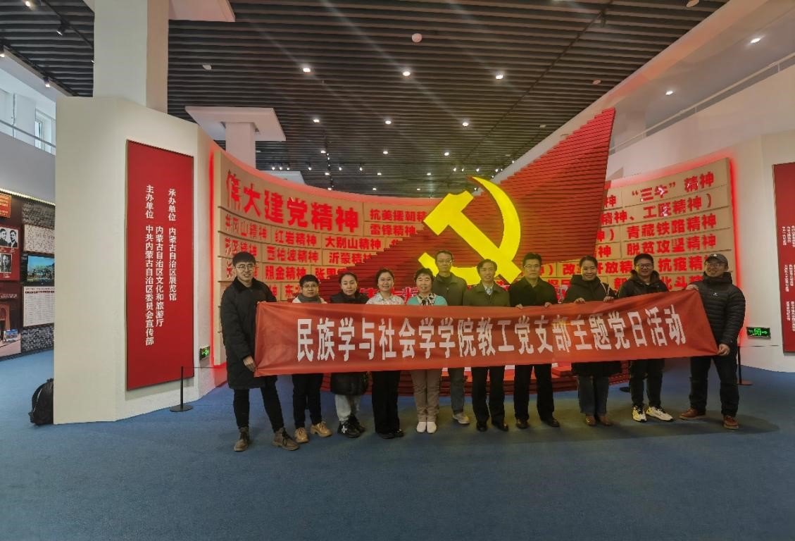 2023年12月9日,必赢bwin线路检测中心民族学系教师党支部、社会学系教师党支部、社会工作系教师党支部、行政教工党支部联合开展主题党日活动,组织教职工党员、入党积极分子到内蒙古展览馆参观“伟大精神引领伟大事业——中国共产党人精神谱系主题展”,接受教育。
